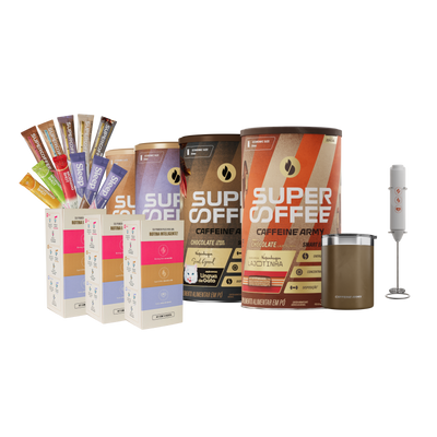 4 SuperCoffee 380g + 3 Kits de Sachês (11 unidades - SuperCoffee, Morning Shot e Koala)