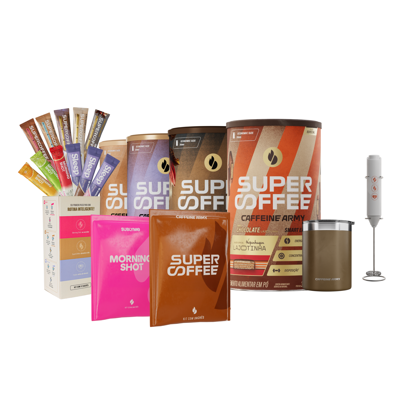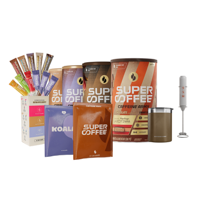 4 SuperCoffee 380g + 2 Kits de Sachês (5 unidades) + 1 Kits de Sachês (11 unidades - SuperCoffee, Morning Shot e Koala)