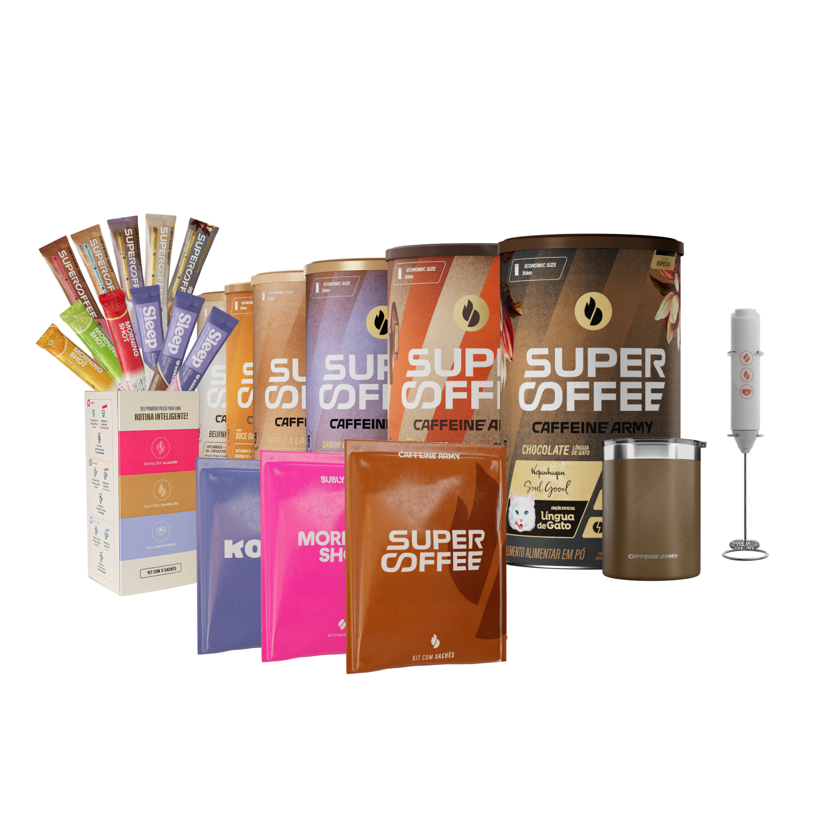 6 SuperCoffee 380g + 3 Kits de Sachês (5 unidades) + 1 Kits de Sachês (11 unidades - SuperCoffee, Morning Shot e Koala)