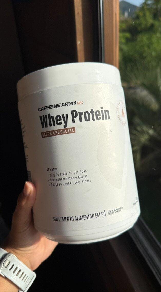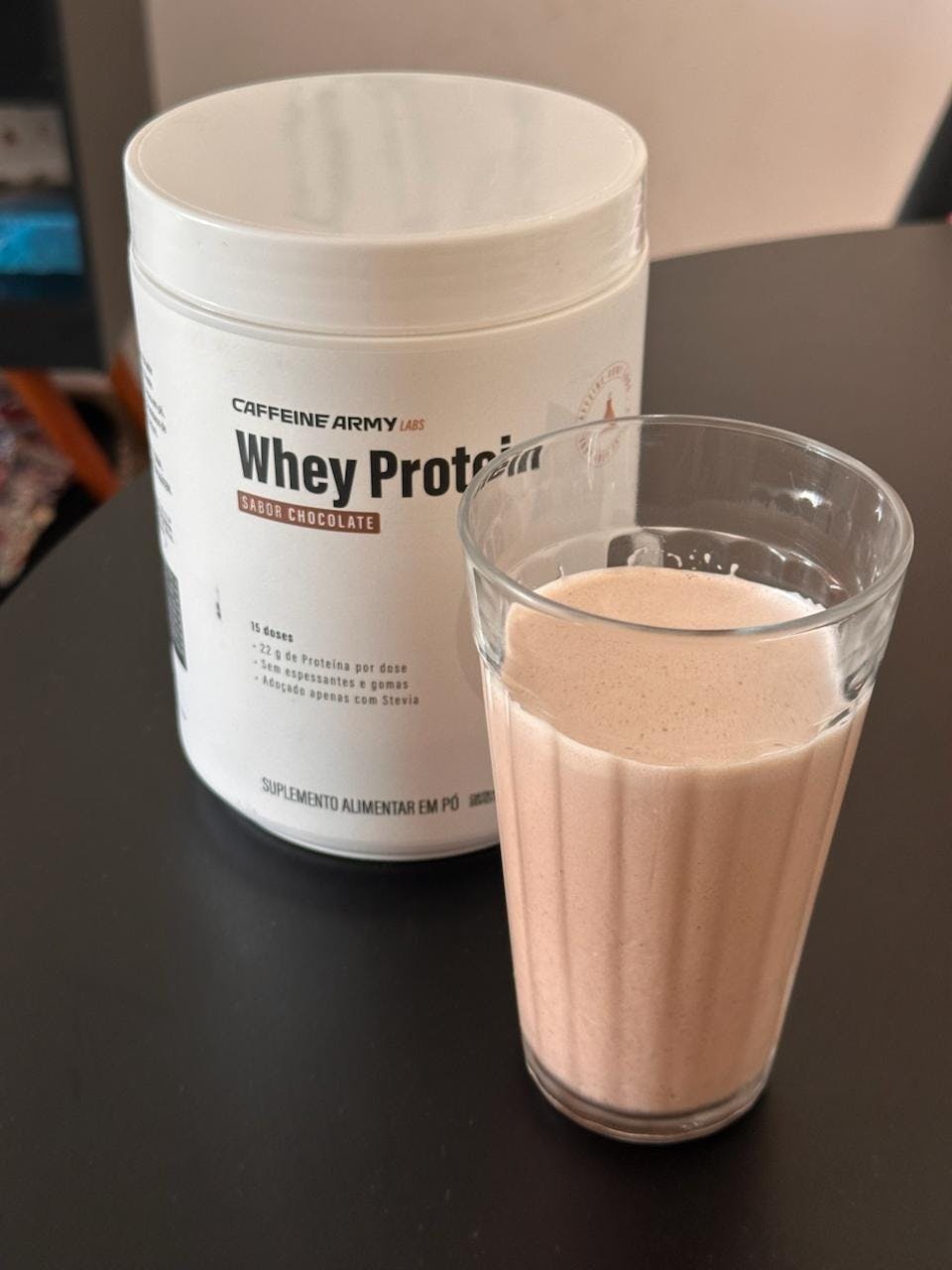 estou usando o whey de chocolate da caffeine army e me surpreendi demais com a qualidade. o sabor é muito gostoso, sem aquele residual estranho que a maioria dos wheys tem. a consistência também é ótima, tanto pra fazer caldinha quanto pra usar em receitas. tu vê que é um whey bem formulado, com ingredientes de qualidade, e que realmente entrega uma experiência diferente. virou meu favorito!!!